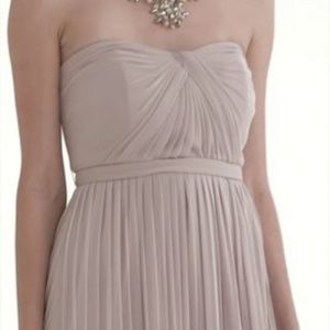 This mesh convertible bridesmaid dress keeps your bridal party cohesive while giving everyone the chance to personalize her look. Fabric ties let you switch up the neckline to match whatever you feel most comfortable in: halter, tank, cap sleeves, one-shoulder, and more.