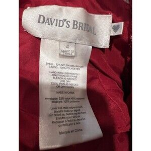 This David's Bridal long fitted red lace gown dress in size 4 is a stunning and elegant choice for formal occasions or parties. With a sweetheart neckline, sleeveless design, and zip closure, this dress exudes sophistication and style. Made from a blend of polyester, nylon, and rayon, the lace fabric adds a touch of luxury to the bodycon silhouette. Perfect for any season, this dress is a timeless piece that will surely turn heads and make a statement. 14 inches pit to pit, 24 inch waist, 54 to 59 inches long and has a 26 inch slit. Smoke free home.