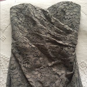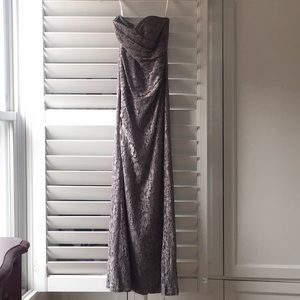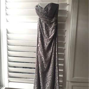 David's bridal Long grey lace dress, strapless sweetheart with ruching, fitted through hips. Excellent condition, worn once, no alterations