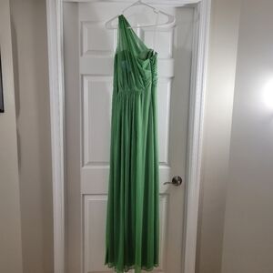 David's bridal long mesh dress w/ one shoulder Clover size 6 style F15928 new with tag.