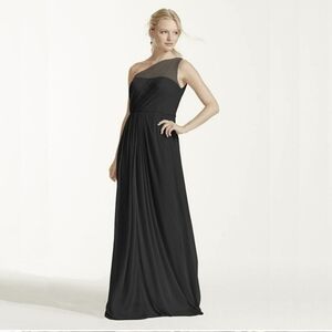 David's bridal long mesh dress w/ one shoulder Clover size 6 style F15928 NWT