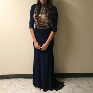 Navy blue and tan sequined dress with train!!!