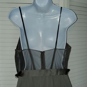 Beautiful BNWT size 8. Grey chiffon deep back, side zip, wrap dress, high slit. Satin bodice, spaghetti straps.