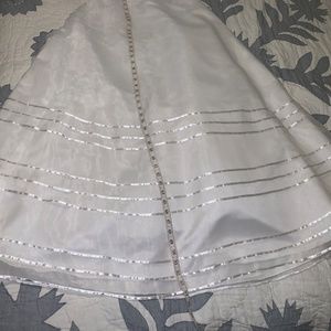 Unworn, untouched, preserved in its box—this David’s Bridal white satin & organza strapless gown (Style T8792, Size 16) waits like a secret kept safe for eighteen long years. Time has passed, yet the dress remains timeless, its lines unbroken, its grace unaltered.