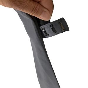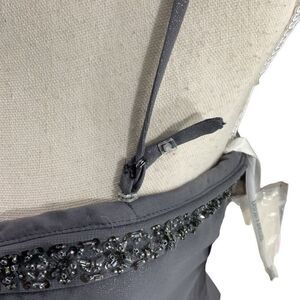David’s Bridal Pewter Gray Shimmer Adjustable Strapless Fog foil Split Gown Sz 4