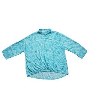 Davina Top Womens Large Geometric Button Front Roll Tab 3/4 Sleeve Blouse