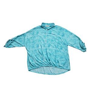 Davina Blouse Womens Large Geometric Button Front Roll Tab 3/4 Sleeve Top