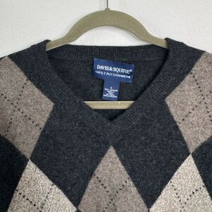 Davis & Squire Men’s Sz L 100% Cashmere Argyle V-Neck Sweater Pullover Grandpa