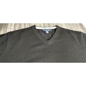 Davis & Squire Men's sz XL Extra Fine Merino Wool Black V-Neck Pullover Sweater