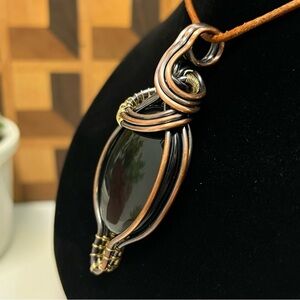 Davis creek rainbow obsidian ~ Handmade Recycled Copper wire wrapped pendant.
