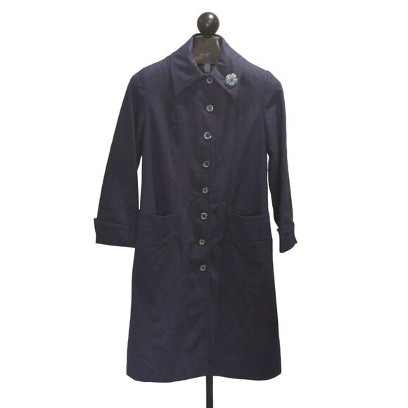 Davis of Boston Vintage Navy Wool Coat Size 12 Brooch Classic Mid Calf Length