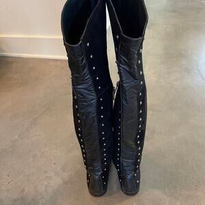 Davos Gomma black suede over the knee riding boots with studd embellished boots. Inner zipper. Made in Italy size 37 (6.5) women’s boots. Excellent like new conditions.