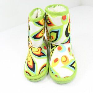 Dawgs Toddler Girls Colorful Winter Boots Size 6/7 Faux Fur Lined Green Yellow