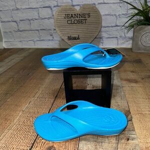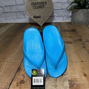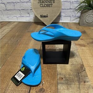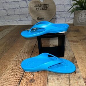 The DAWGS Flip Flop is super lightweight with a non-marking outsole. This women's flip flop provides great comfort with an extra-thick sole, a massaging footbed, and arch support. These shoes are very easy to clean and maintain.