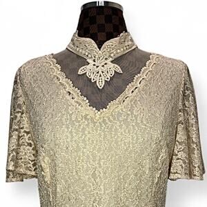 STUNNING Vintage Dawn Joy Cream Lace Corset Maxi Dress