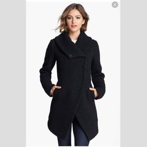 Dawn Levy Adelaide Coat Lacket Sz M $695 Navy Blue Boucle Wool Asymmetrical