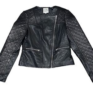 Dawn Levy Black Quilted Genuine Leather Moto Jacket Size Small