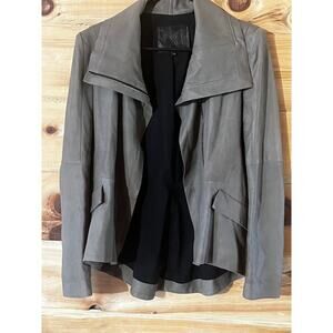 Dawn Levy Leather Grey Zip up jacket. Womens Medium. High-Low. Soft!