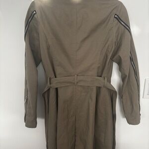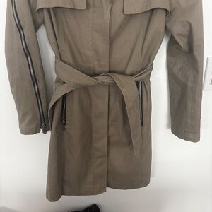 The definition of modern classic ✨ This Dawn Levy trench coat in beige is lightweight and beautifully tailored, with sleek zipper details and a flattering belted fit. Perfect condition and timeless style.