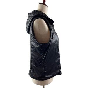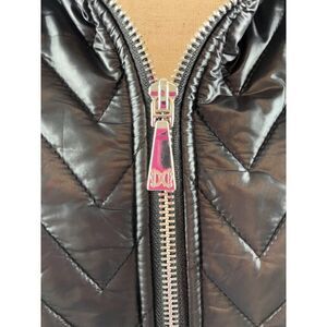 Dawn Levy Sly II Chevron Hooded Puffer Vest ONLY Medium Black Faux Fur Lined