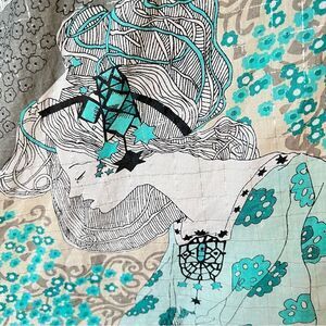 Gorgeous colors of turquoise/aqua blue, gray, black, taupe and ivory