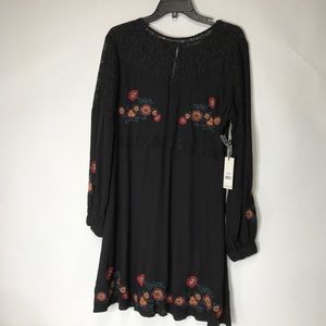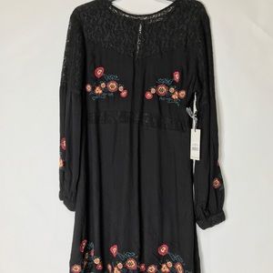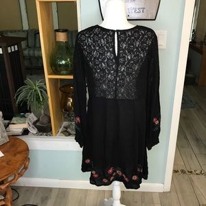 Dax black embroidered and lace dress, great dress for any occasion with pretty flowers embroidered on hem and bodice as well as the sleeves, with a lace back. In new condition with tags no known flaws.
