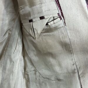 Natural line color with dark raspberry pink metallic stripe. Padded shoulders.