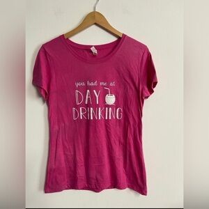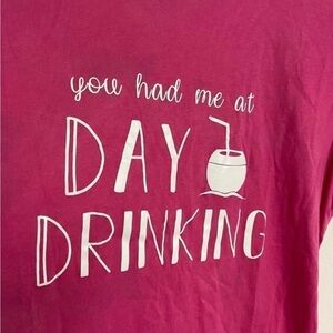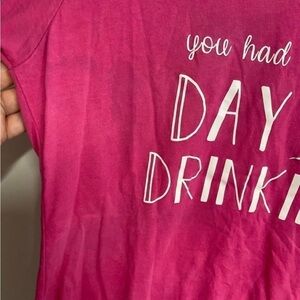 Day Drinking Women's XL T Shirt Pink Cap Sleeve Graphics Factory Distressed