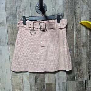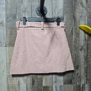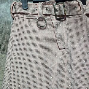 Details: all over Embellishments, stretchy, removable belt, lightweight, zip front closure, mini