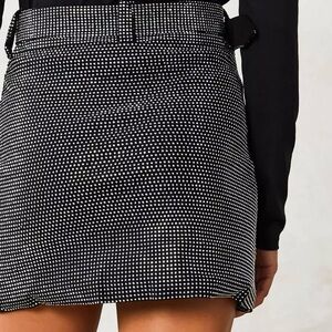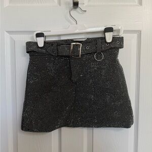Day G Rhinestone Mini Skirt High Waisted Black Silver Belted Size Large Buckle