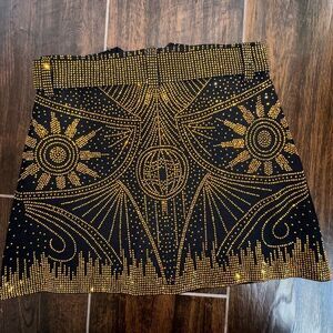 Day G Gold Studded Mini Skirt with Belt | Art Deco Festival Glam size Large