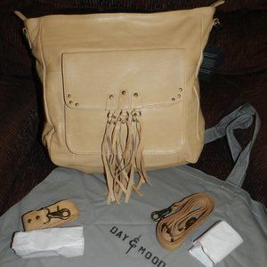Day & Mood Leather Fringe Padded Sleeve Laptop/Tablet Compartment Bag Camel NWT!