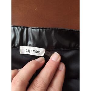 Elevate your wardrobe with these chic black faux leather shorts from Day & Moon. Perfect for a day out with friends or a night on the town, these shorts are made from high-quality materials to ensure lasting comfort and style. The medium fabric wash and edgy design make these shorts a must-have for any fashion-forward woman.