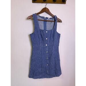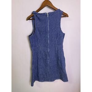 Day + Moon Blue Tweed Button Front Mini Dress Women’s Size M Square Neck Sleeveless Preppy