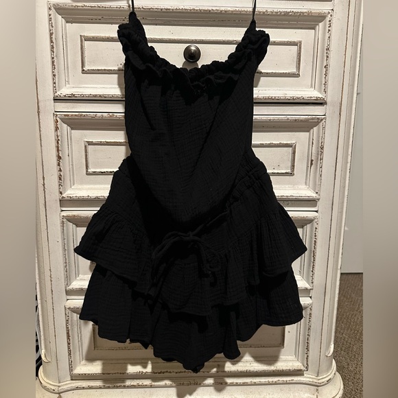 This romper is perfect for game day!! Cinches at the waist and has ruffle skirt. Built in shorts- looks like a mini dress. Worn once and in great condition