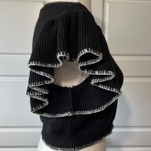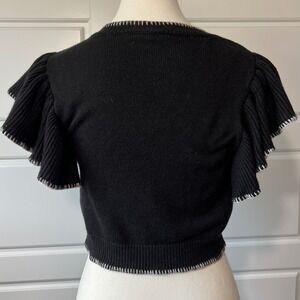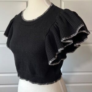 Day + Moon Ruffle Sleeve Crop Top Knit Sweater Black Trendy Size S