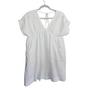 Day + Moon White Linen Gauze V-Neck Tunic Mini Dress Small Bridal Bachelorette