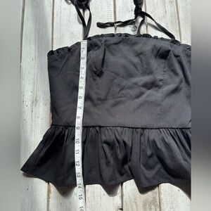 #DayAndMoon #PeplumTop #TieStraps #BlackTop #ShirredBodice #FeminineStyle #LayeringPiece #SummerStyle