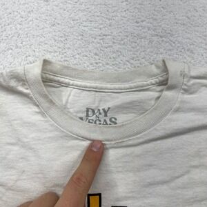 Some small spots near collar. Authentic Day N Vegas Music Festival long-sleeve T-shirt from the 2021 event. This vintage tee features bold graphics on the front, sleeves, and back, showcasing the festival's logo, dates (November 12th-14th 2021), and performer lineup including Kendrick Lamar, Post Malone, and Tyler the Creator. The design incorporates playing cards and a retro aesthetic. This shirt would be perfect for casual wear, concerts, or music festival outings.
