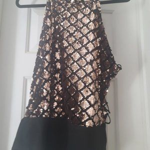 This Halter style sequin bodysuit has never been worn. I took the tags off because I thought i was going to wear it. But it was too big. It laces up on both sides and zips up the back. Perfect for adding a little glitter and sequins to any outfit!