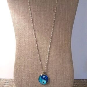 Balance your style & spirit with this light blue & dark blue Ying Yang cabochon necklace. This necklace features a stunning glass cabochon pendant with a light blue & dark blue Ying Yang symbol. The symbol represents harmony, duality, & interconnection. The pendant is set in a silver-tone & hangs from a silver-tone chain that’s approximately 24 ins. long. The chain has a lobster claw clasp for easy wearing. This necklace is a great accessory for any occasion, whether you want to express your zen, your personality, or your fashion sense. It also makes a lovely gift for someone who appreciates the meaning of Ying Yang. Order yours today & enjoy the beauty & balance of this necklace!