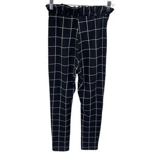 Day & Night paper bag waist Pull On Pants Windowpane Stretch Black White Small