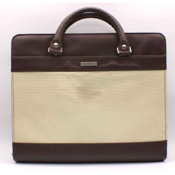Day Runner Briefcase Planner Organizer Leather Canvas Zipper Handle Brown Green