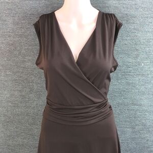 Lightweight, surplice style with a flattering gathered band at the waist.