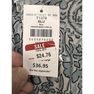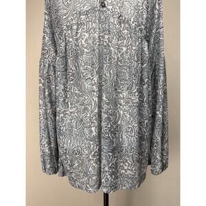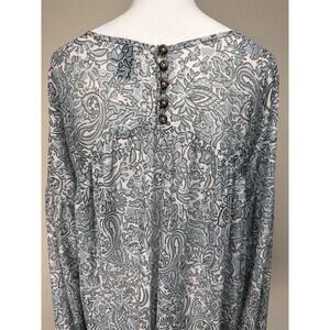 Day Trip BKE BLUE WHITE FLORAL BABYDOLL TUNIC PEASANT TOP BLOUSE Long Sleeve NWT