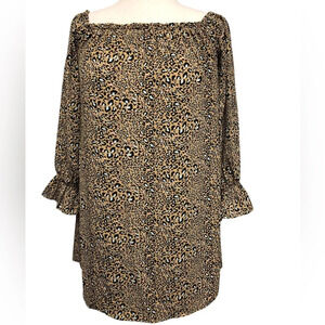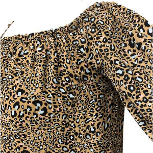 Off The Shoulder Cheetah Print Chiffon lined, Elasticized neckline and cuffs Mini Dress