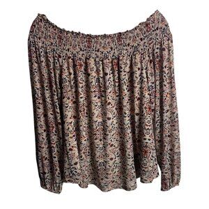 Day Trip Size Medium Mesh Off the Shoulder Top Neutral Floral Boho Prairie Fall