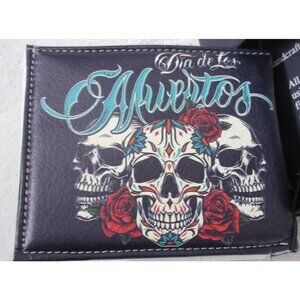 Day of The Dead Dia De Los Muertos Skulls Rose Print Bi-Fold Vegan Leather Wallet. "Day of The Dead/ Dia De Los Muertos" Skulls/Roses soft Vegan Leather bi-fold handcrafted wallet. Terrific Skull/Roses print on both sides. Brand new, with matching gift box. This wallet features 2 I.D. windows and 8 slots for credit cards with 2 sides for paper money as well as a matching gift box. This item measures approximately 4.5 inches x 3.5 inches. Fast U.S. shipping to your door. Please message us with any questions and visit our store for more great items. Thanks!