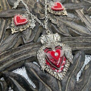 Stunning Art by C Rainwater. Look at this flaming heart necklace for day of dead!! 24" long
