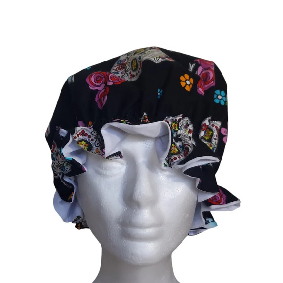 Day of the Dead Bonnet Elasticized Head Bonnet with side bow Sugar Skulls